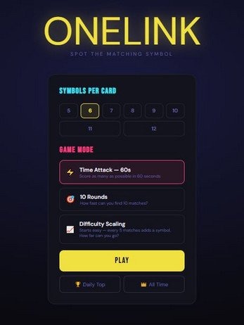 ONELINK is pure, distilled reflex gaming. The kind that makes you say "one more round" fourteen times in a row. The kind your friends watch over your shoulder and insist they could do better. (They can't.)
